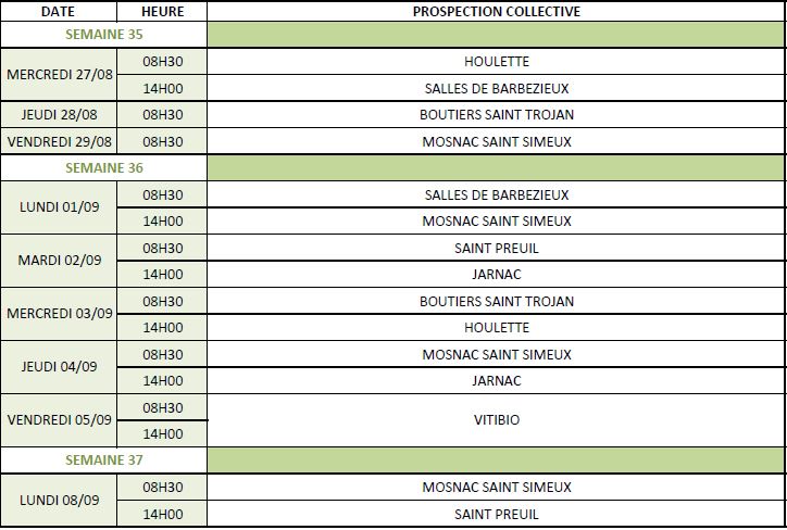 Les dates retenues pour ce traitement sont du 15 juillet au 17 août (voir communiqué officiel de la DRAAF Nouvelle-Aquitaine ici).